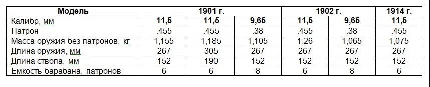 Технико-тактические данные револьверов «Веблей-Фосбери»