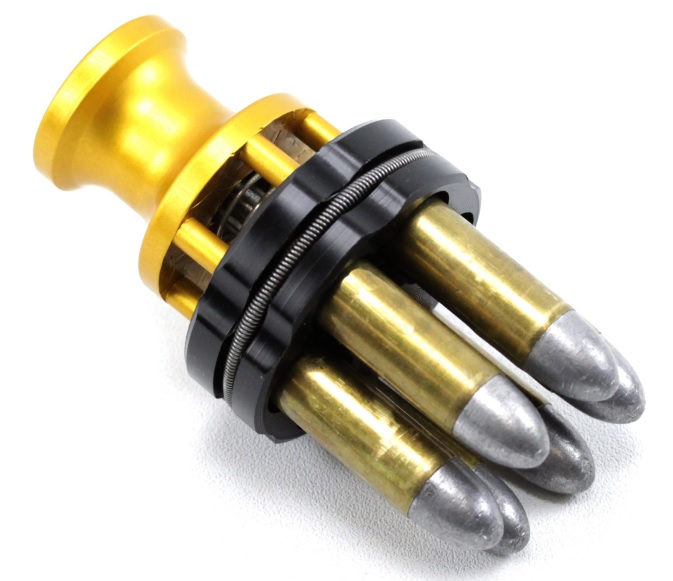 Я остановился пока на ХКС спидлоудерах, разлочивающих патроны поворотом рукоятки по часовой стрелке. Кстати, у них и самая вменяемая инструкция по определению модели, т.к. тут влияет и величина рамы револьвера и калибр. Спидлоудер надёжный и удобный. Можно не бояться носить его в кармане. Патроны не разлочатся. Единственное НО -- тренироваться с гильзами не получится. При блокировке патронов в каморах спидлоудера они слегка наклоняются к центру, что не влияет на манипуляцию ц патронами в которых пуля конической формы выступает за рант гильзы, но делает невозможным (происходит утыкание краёв гильз в края камор барабана) манипуляцию гильзами и патронами ВАД КУТЕРС, которые утоплены заподлицо в гильзу. Соответственно и дла резиноплюев он не подойдет.